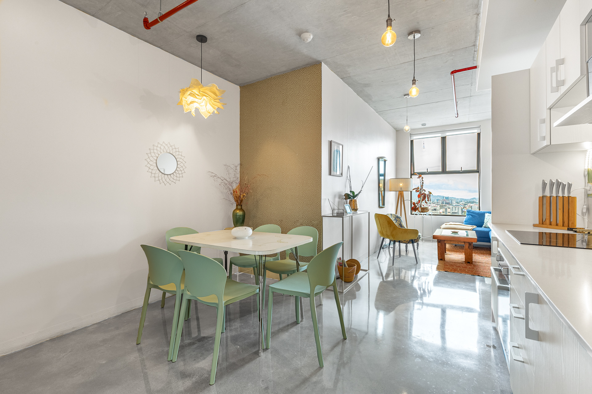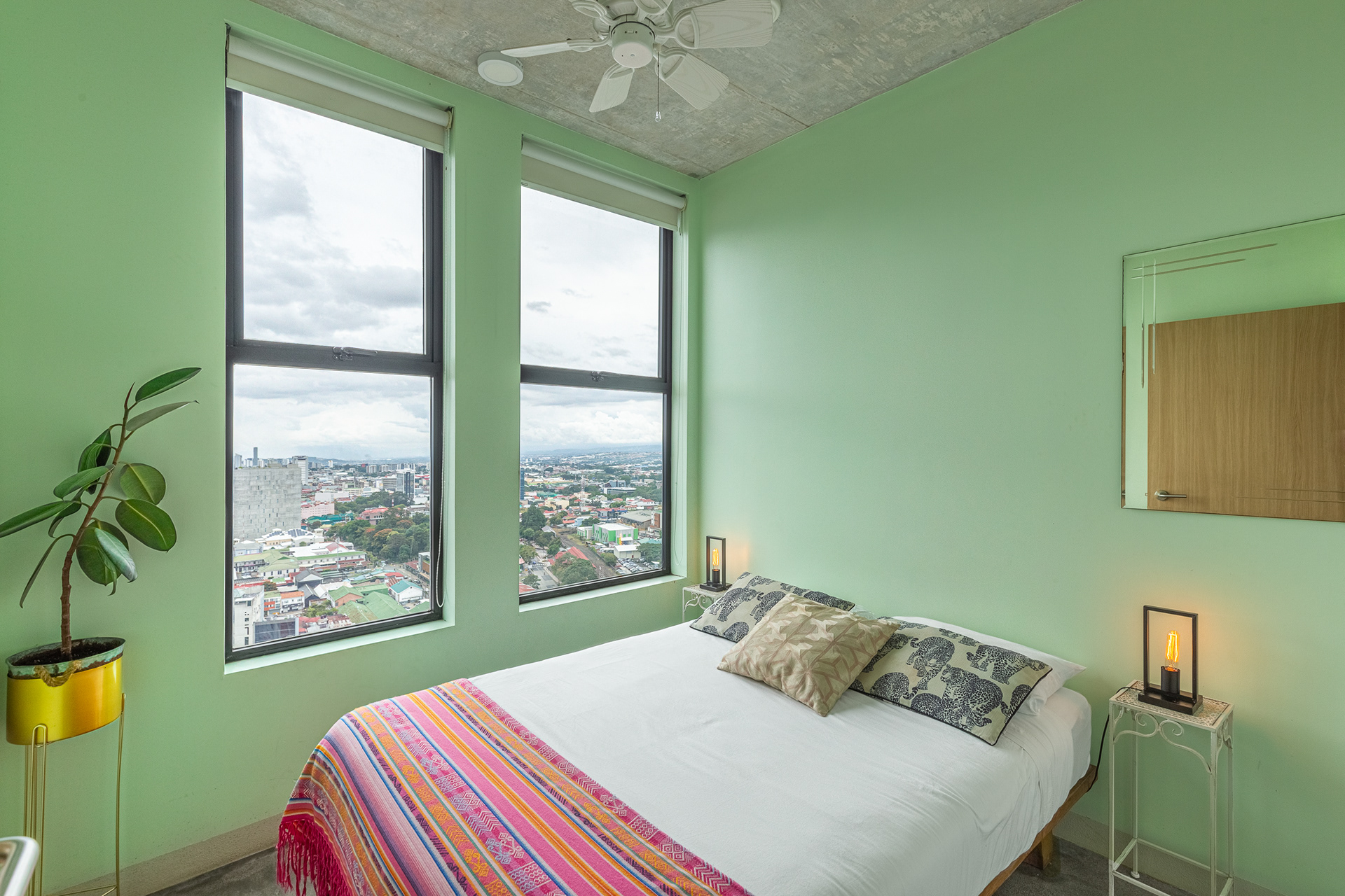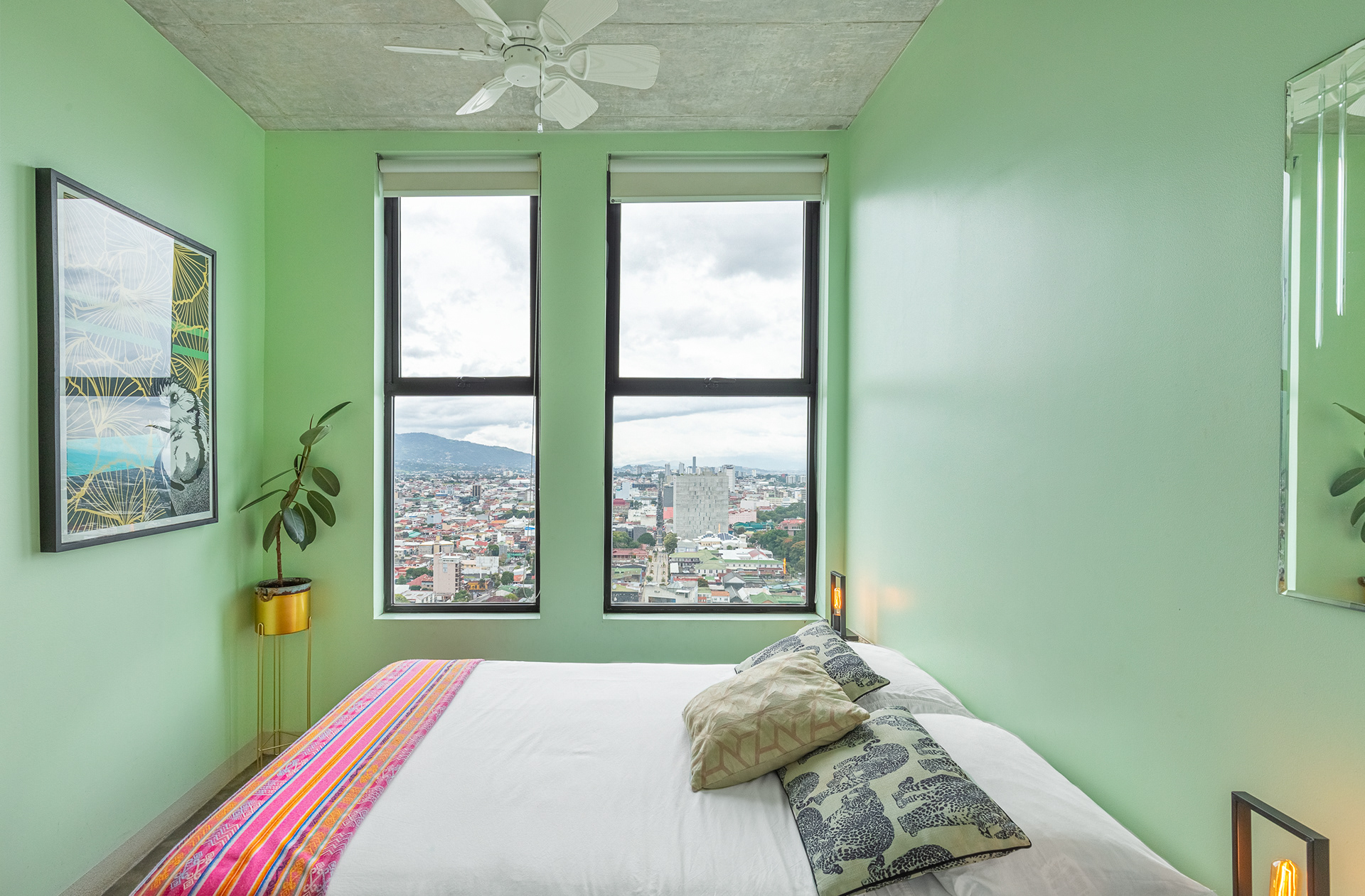 At the 25th floor, this cozy and full-packed apartment is located in Barrio Escalante, the most bohemian in San José, Costa Rica.